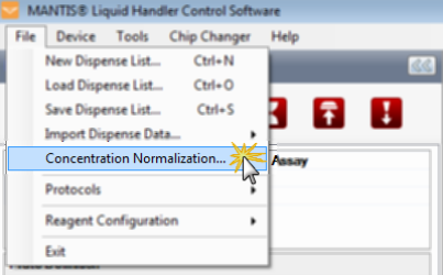 OPTIONAL: Go to the File menu, and select Concentration Normalization if you are not satisfied with the way your current experiment was imported. The software will remember the choices you have made during the import process and allow you to modify them as necessary. This option is applicable only if you have not restarted the MANTIS software.