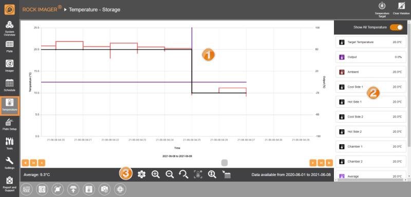 Answer: The temperature icon in the Status Bar will be flashing orange to notify you. You will also receive an email notification should ROCK IMAGER® fails to reach the target temperature. This allows you to investigate any potential issues with the temperature sensors. Click the Clear Violation icon