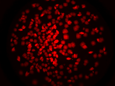 MFI Sample Images - Visible, Texas Red, Ultraviolet, and Fluorescein (Cyan)