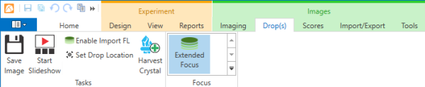- From the Tasks group you can save a drop image, begin a slideshow of all of the drop images from your experiment, or harvest a crystal in order to send it on a Synchrotron Trip. You can also enable the import of Focus Level (FL) images for a drop, or manually set the drop location of a well if a drop is not located within the overview image.