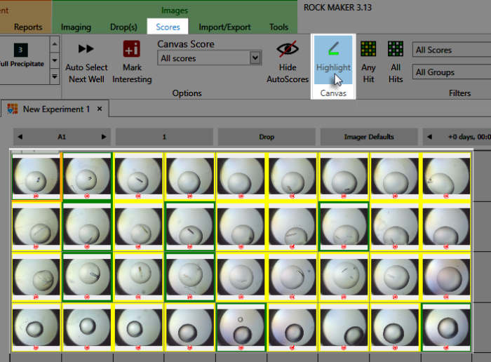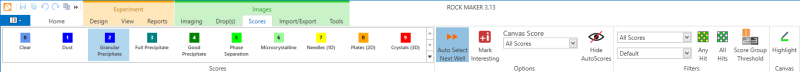 - In the Options group, you can enable the Auto Select Next Well option to automatically move to the next well after you have scored the current well. You can also mark a drop as interesting, or filter which scores are visible on each drop image. If you want to hide the auto scores from the Canvas, click the Hide AutoScores button.