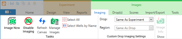 The Disable Imaging button enables you to disable imaging for drops or plates.
