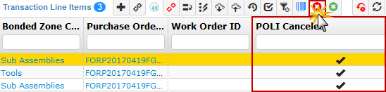 The warehouse and purchasing teams can now cancel a purchase order that has discrepancies via the Transactions table. To cancel a purchase order, click a record on the Transactions table, select the desired item under the Transaction Line Items table on the right-side of your screen, and click the Cancel Item button. You can see all of the canceled POs in the POLI Canceled column (indicated by a check mark). You can also uncancel any cancelled POs by selecting them and clicking the Uncancel Item button , if necessary.