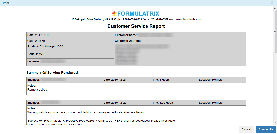 Automatically generate a service report suitable for customer viewing, so that they understand all of the tasks and costs related to a case. For more information, see Generating Customer Service Reports.