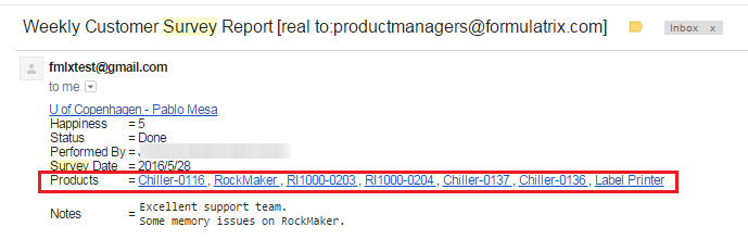 The weekly customer survey report now contains all of the products that the customer purchased and provides a hyperlink for each product, making it easier to find the product installation information they need.