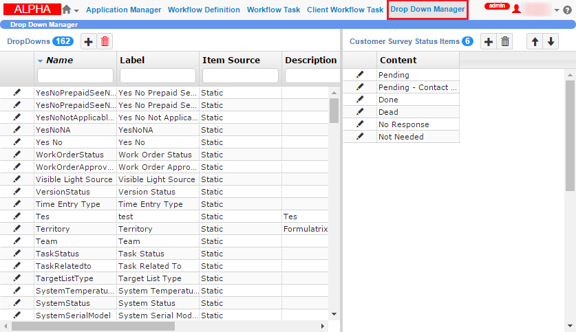 Due to inactive support for Silverlight on some browsers, the Dropdown Manager table in the Administration menu has been moved to HTML.