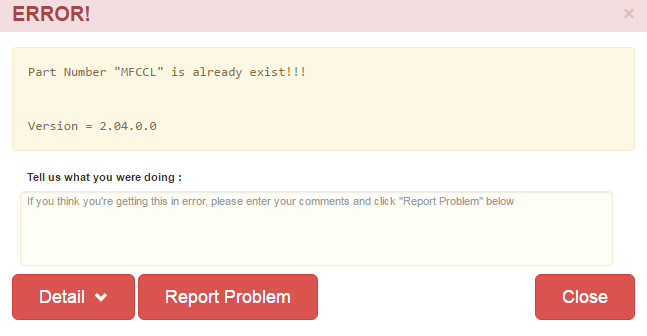 Duplicate Part Number Error