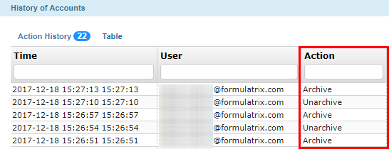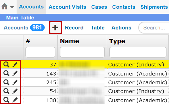 Customer Activity Report Button on the Accounts Table