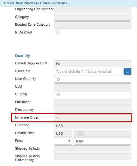 TIGA now automatically displays the minimum order quantity information for all of the available vendors when creating or updating POLI, so that you can quickly identify and adjust the order quantity for specific vendors if necessary. If the total Quantity is less than the required Minimum Order, TIGA will automatically add the discrepancy between these values. This ensures that the total Quantity always meets the Minimum Order threshold. See also Creating Purchase Orders (PO).