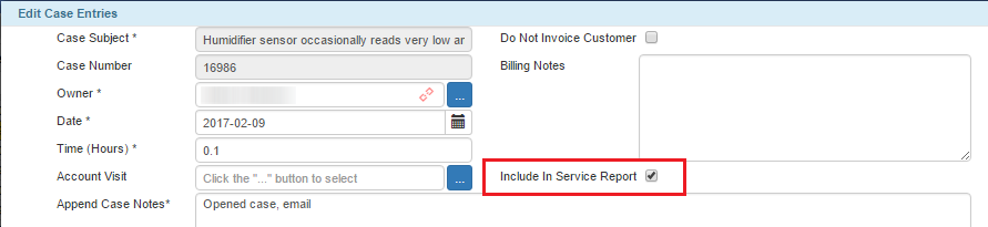 Include In Service Report Option in the Case Entries Window