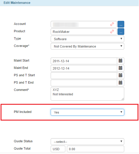 PM Included Option in the Maintenance Window