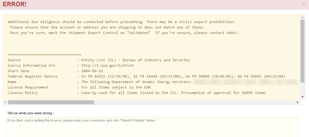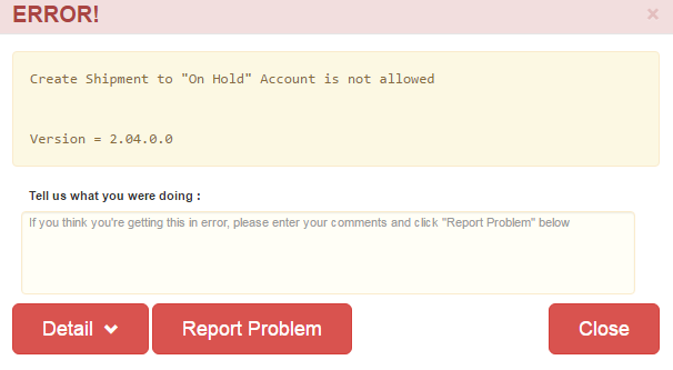 Shipment Error Message