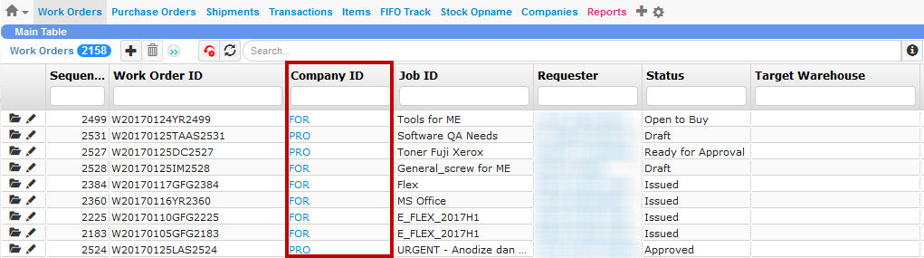 Improved the WO to prevent users from changing the company names (i.e. FUSA, PT FORMULATRIX Indonesia, and PT Pro Manufacture) after the WO is set to Open to Buy, to avoid errors.
