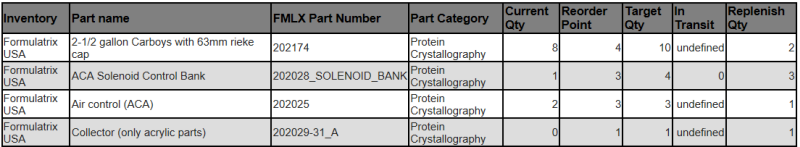 Improved the quality score email to send the installed product score information to only the specific sales team or registered recipients for the product. For example, if the installed product score is for a protein crystallography product, then the email will be sent to pcsales@formulatrix.com.