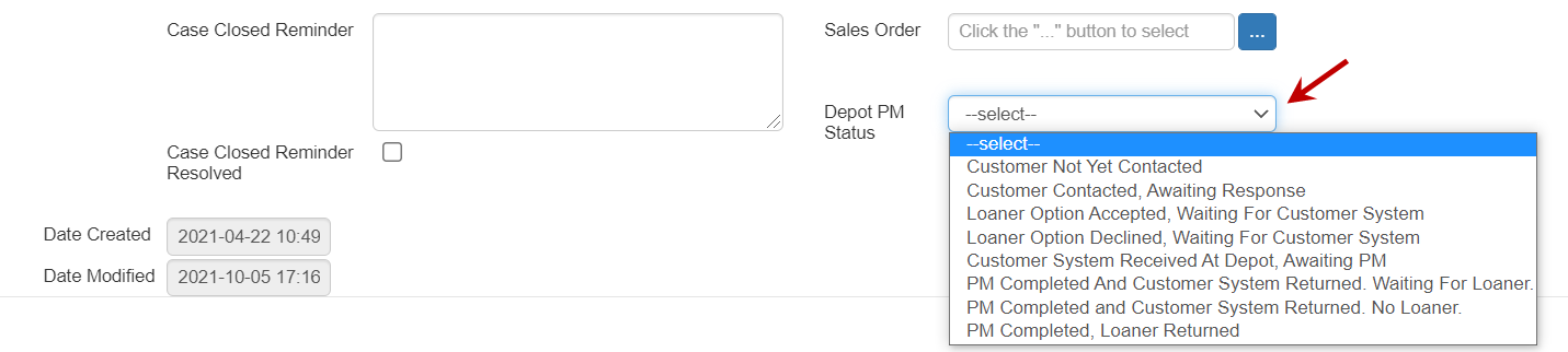 We have optimized the Depot PM Status drop-down in the Cases window to better support the Preventative Maintenance (PM) workflow.
