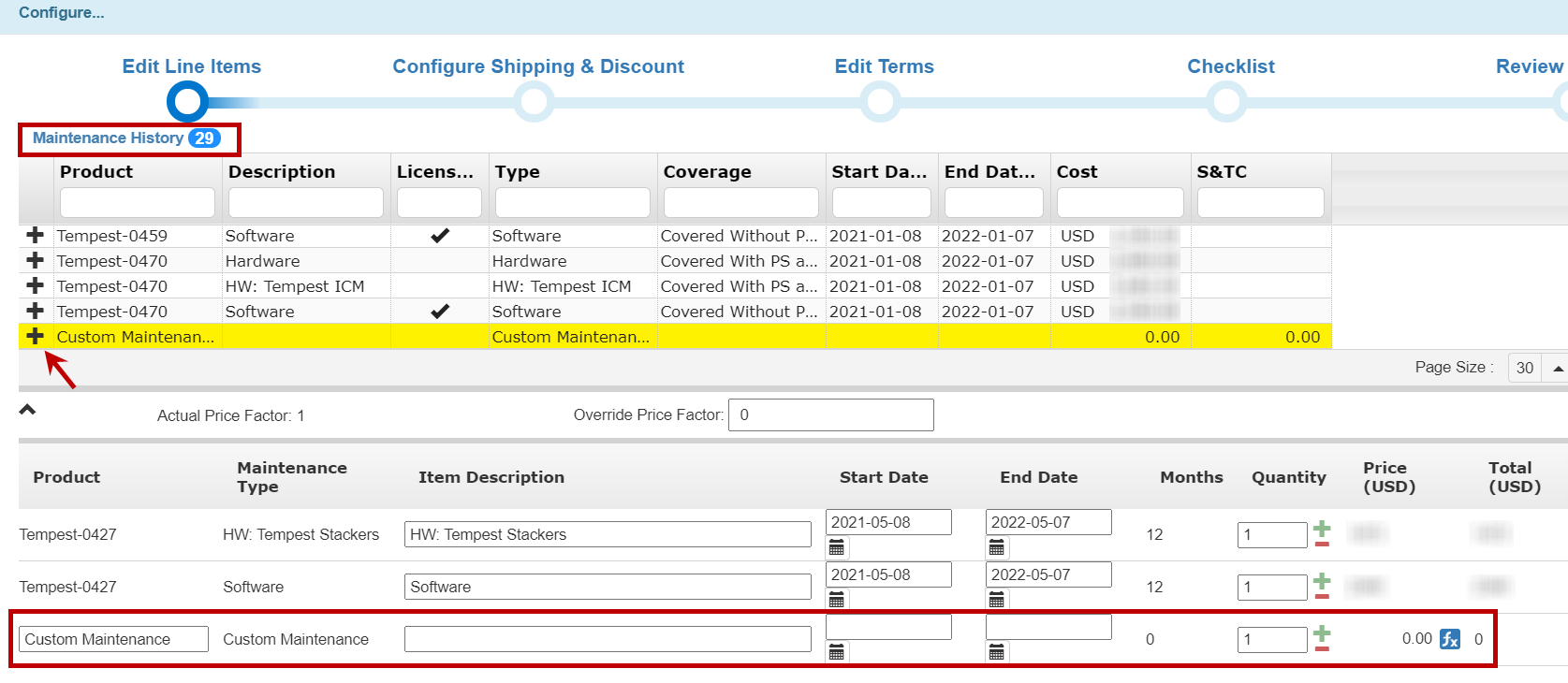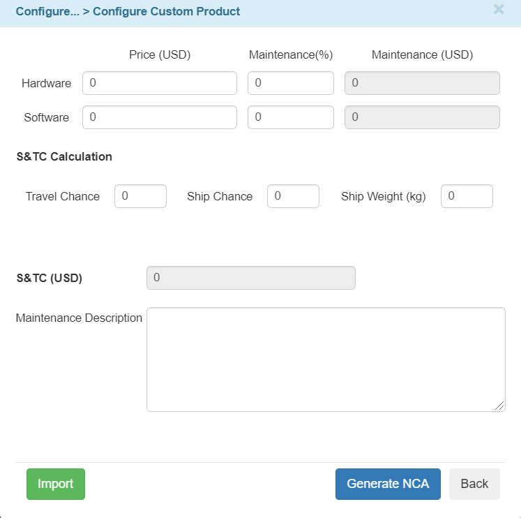 Renamed the Software Maintenance Price (USD) field to Software Price (USD) and added the new Software Maintenance % field to the Configure Custom Product window.