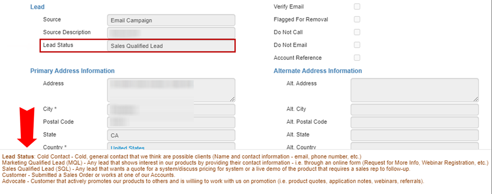 Lead Status Descriptions for Better Identification