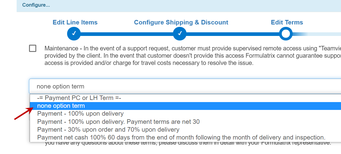We’ve fixed an issue where the View and Hide features in the Edit Line Items section of the Quote wizard didn’t work for maintenance items, as expected. TIGA will now show or hide the maintenance items in the Quote PDF based on the settings you have defined in the wizard. For example, if you mark items in the wizard as visible (