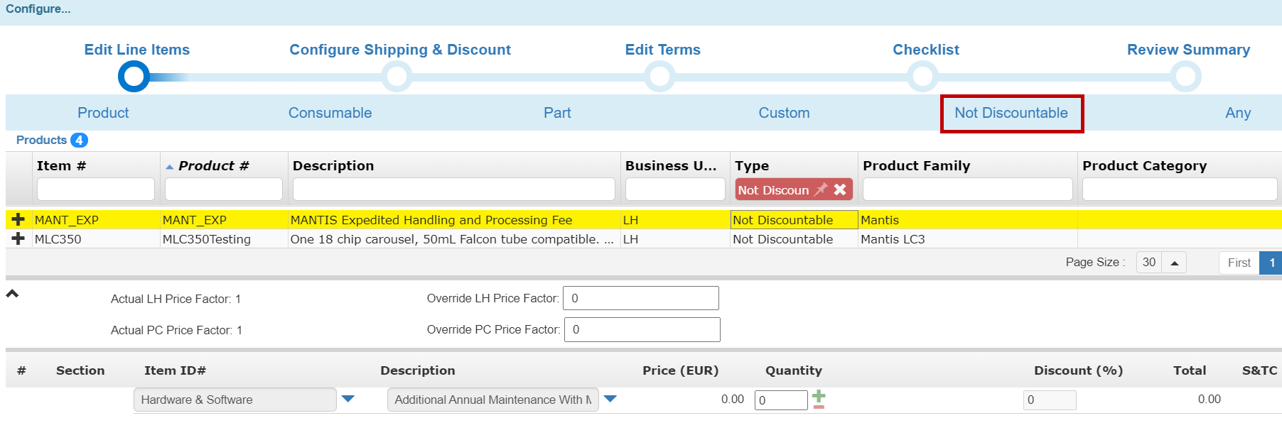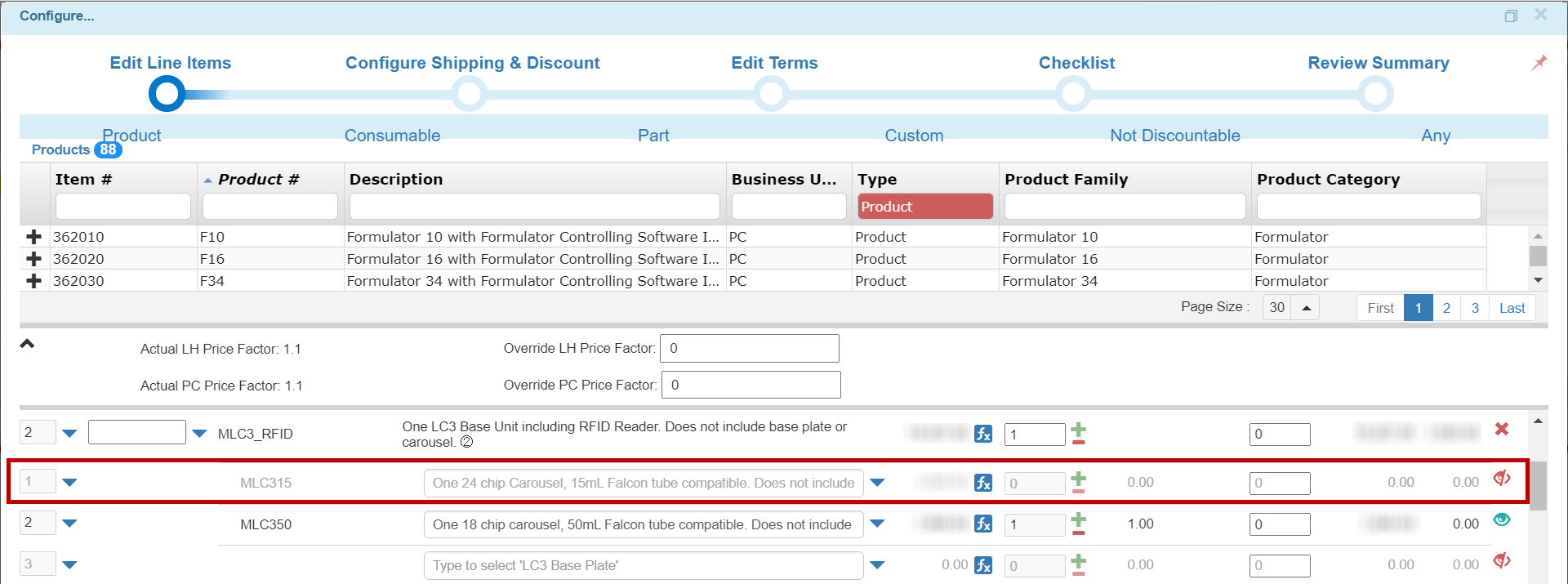 TIGA will automatically update the Non-Commissionable Amount (NCA) values for Custom Products if the user changes the Price Factor information in the Quote Configuration window.
