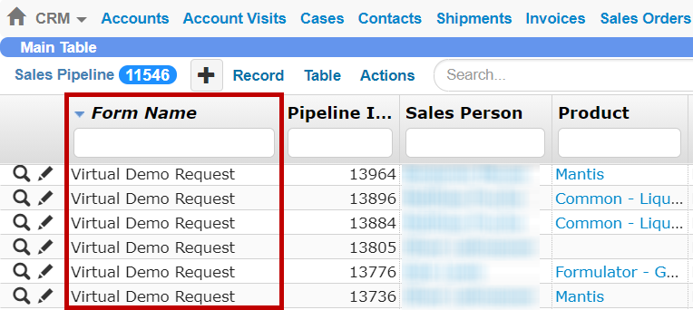 The Forms table is now available in CRM, allowing you to efficiently track all of the forms submitted by visitors on the FORMULATRIX website. This helps the Marketing team get insights faster into every potential sale.