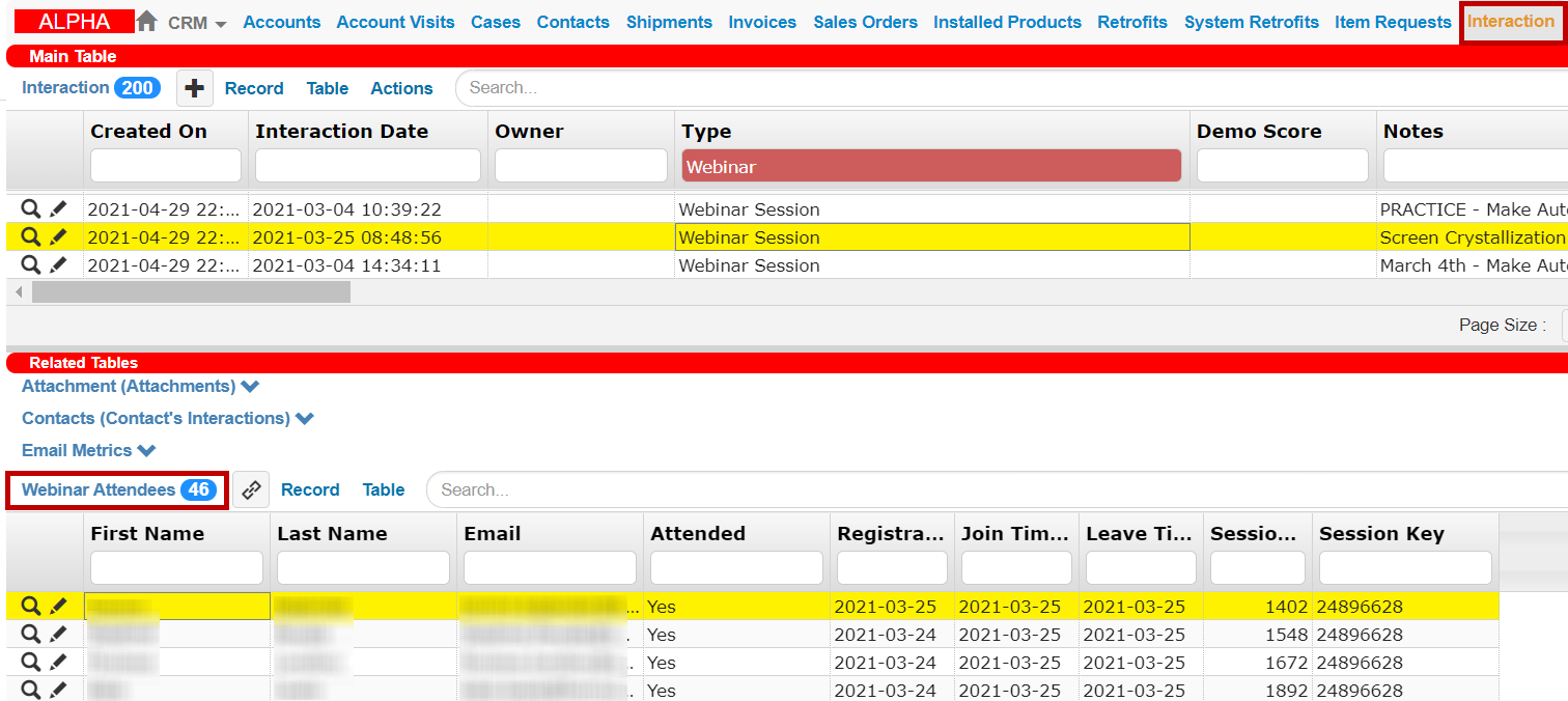 The table views in the CRM and Production application are now synched so all of the data and format will look the same in both places.