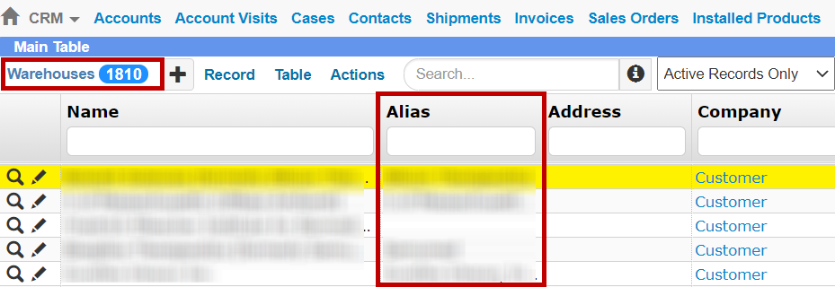 The Alias column is now available for the Source/Target Warehouse pickers. This allows the Support team to assign custom names to each Support warehouse.