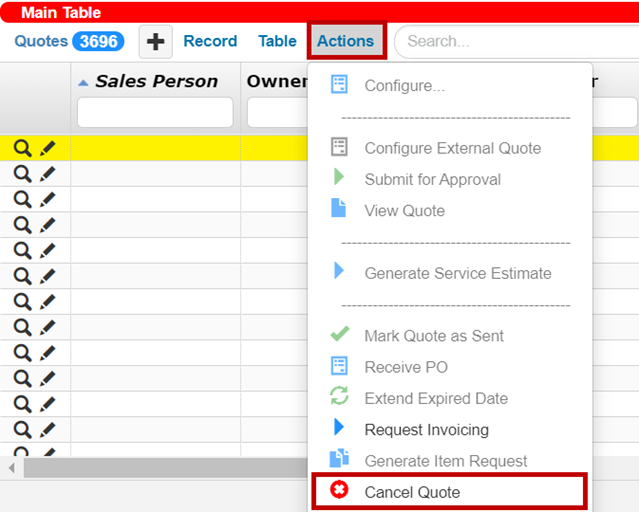 You can now cancel Service Estimate (SIM) Quote drafts and put the cancellation notes via the Cancel Quote command in the Actions menu of the Quotes main table.