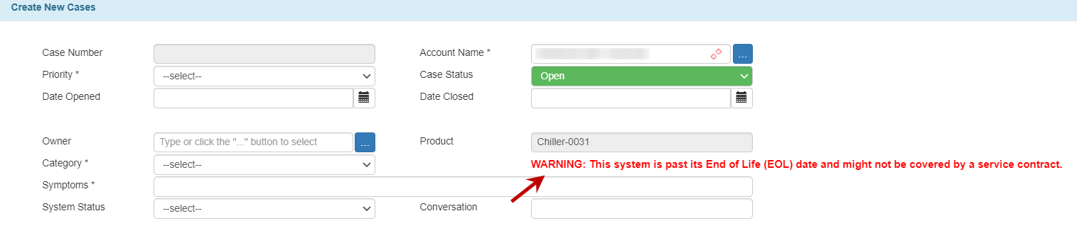 Now, TIGA will display a warning message if a newly created case references a system that is past its end-of-life (EOL) date.