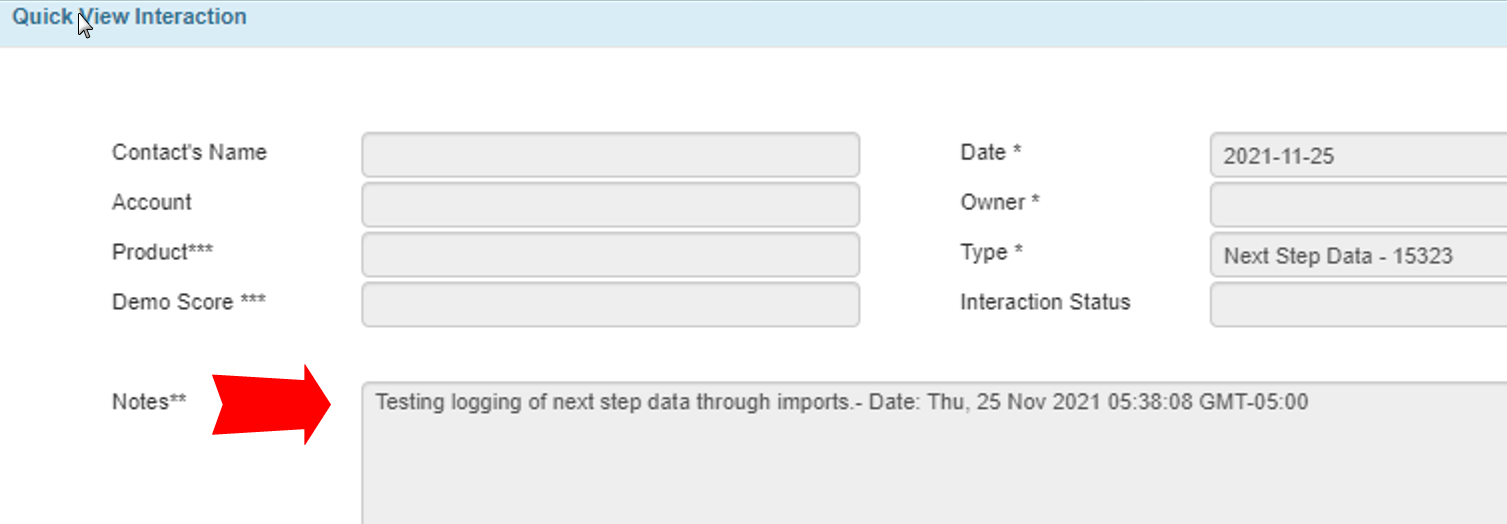 When someone is updating the Next Step field in the Sales Pipeline table, TIGA will automatically save the previous data with a time-stamp to the Notes field of the Interaction window and table. This helps you effortlessly track the Contact Sales Pipeline Next Step history.