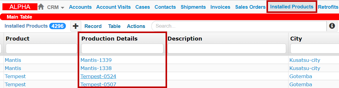 We have added the Production Details column to the Installed Products table that allows you to quickly access production QA information about the specific product.