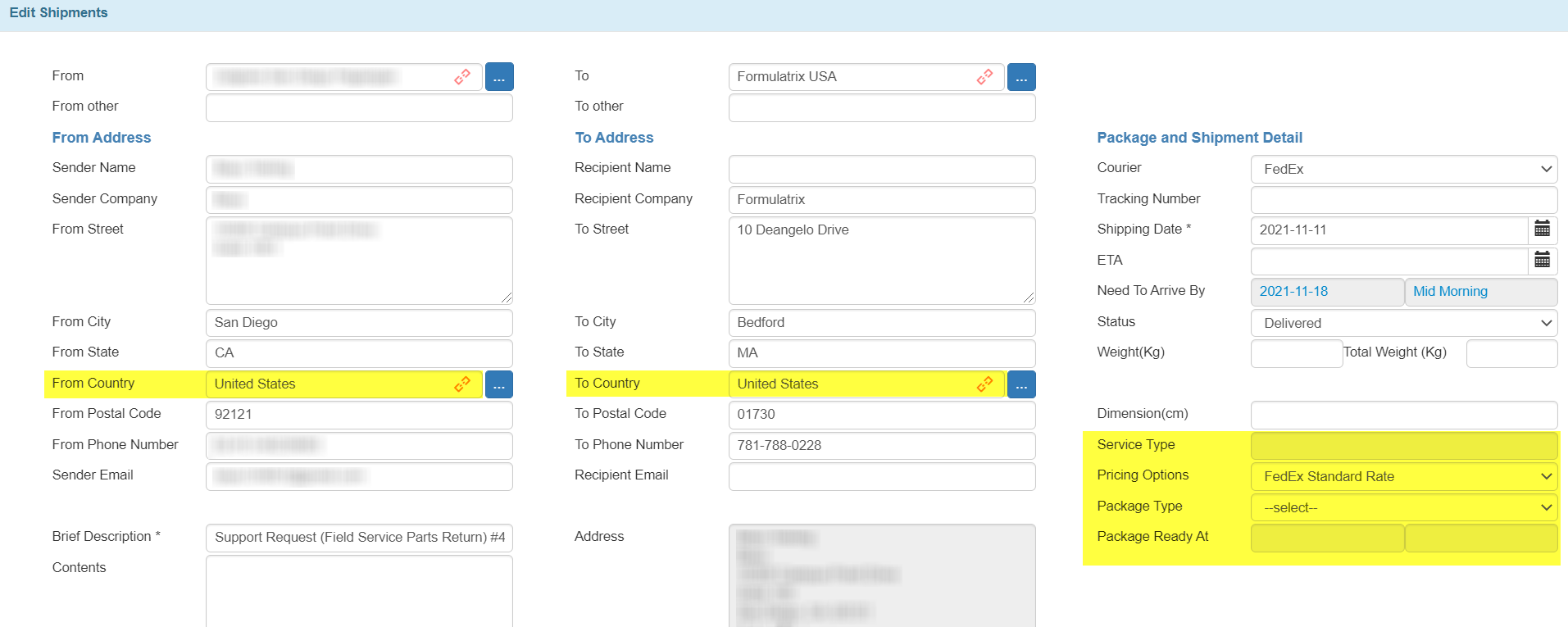 Transaction Type is Shipment Out, Shipment Request Out, or Support Request Out.