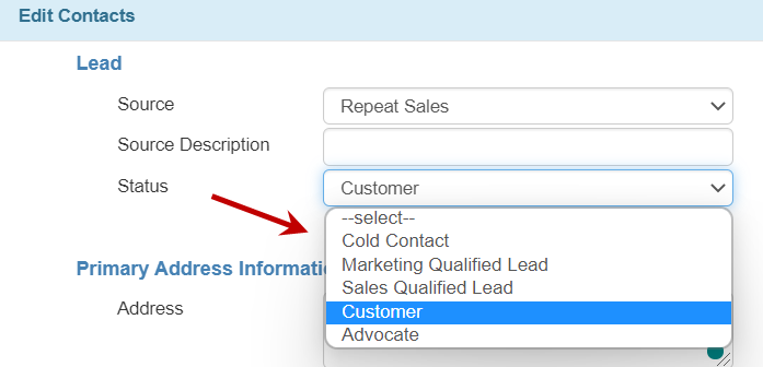 For added convenience, we’ve changed the Status field in the Contacts table to a drop-down list with the following options available: Cold Contact, Marketing Qualified Lead, Sales Qualified Lead, Customer, Advocate. The values in the drop-down are connected to the contact priority, arranged from the lowest to highest. Once a status moves to a higher priority, it won’t be able to return to a lower one.