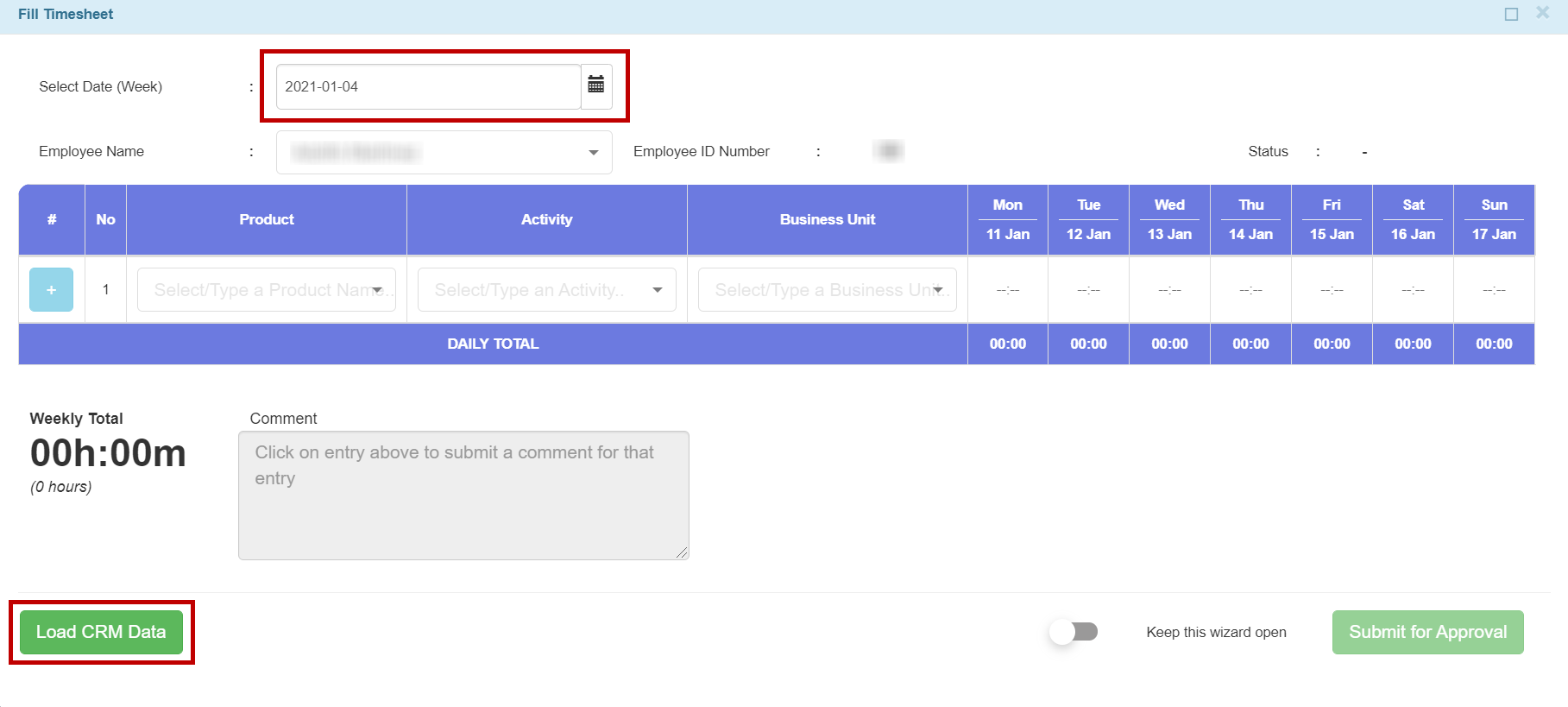Now, you can submit your time entries using the Submit for Approval button in the Timesheet wizard starting from Friday on the current week. This button will be disabled before that Friday.