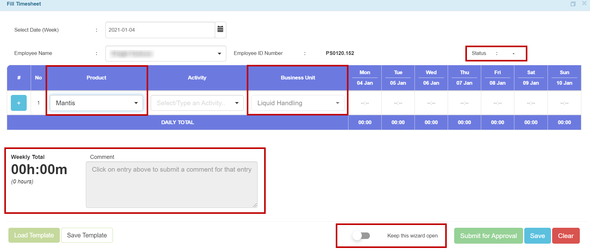 Keep the Timesheet Wizard Open