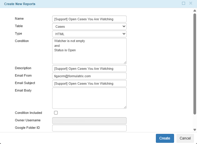 Owner Username — This field is automatically populated based on the user who created the report.