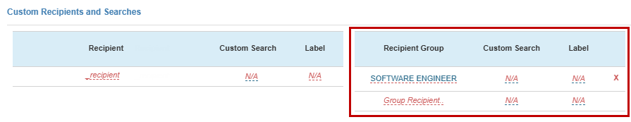 Open the schedule and go to the Custom Recipients and Searches section.
