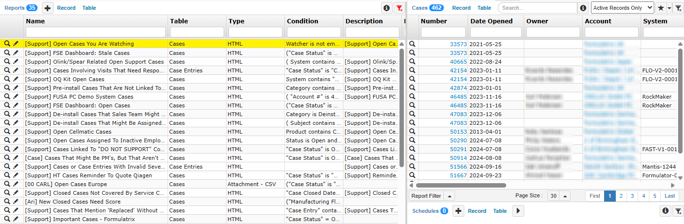 TIGA provides a flexible and powerful reporting system that enables users and administrators to create custom reports. These reports allow users to extract data from any table, filter the results using specific criteria, and automatically distribute them to any user or group through scheduled emails.