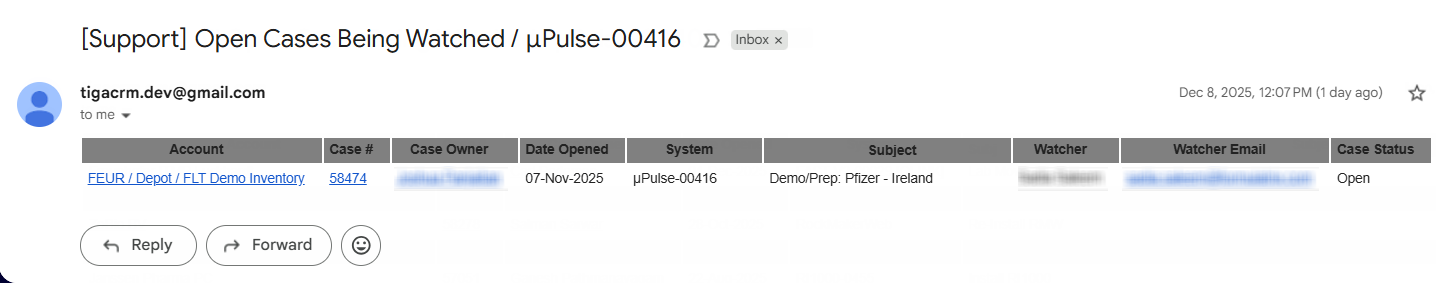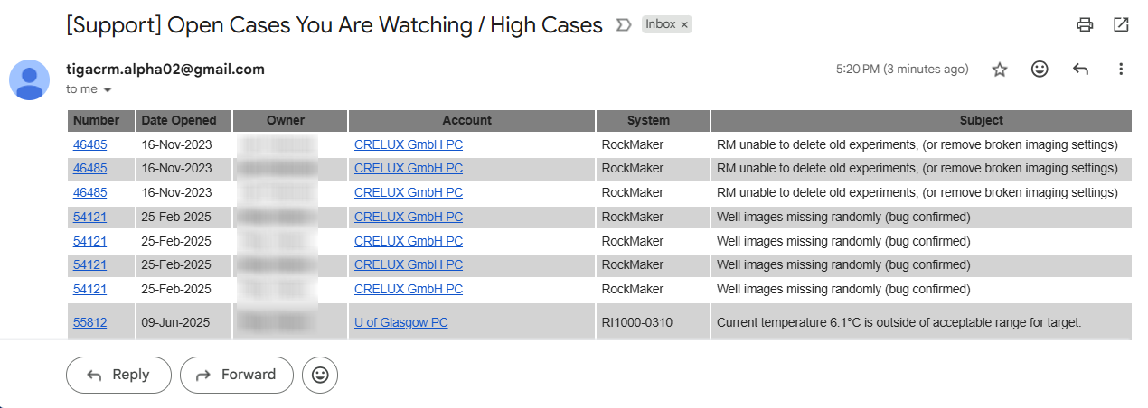 Email 3Subject: Support Cases with status Open / Support USACases