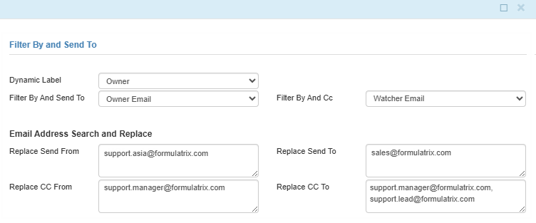 Replace Send From — Enter the original recipient email address generated from the Filter By And Send To field that you want to replace.