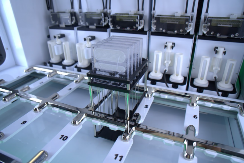 You have filled the cleaning reservoir with the recommended solution and the buffer reservoir with a buffer solution of your choice.