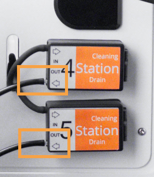Insert one end of the tube into the OUT port of the Cleaning Station (Drain) pump(s).