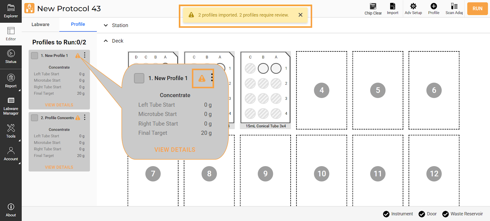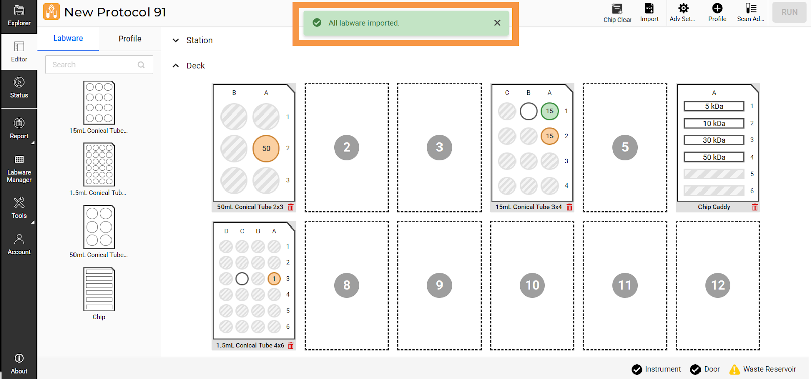 Importing Labware and Profile CSV