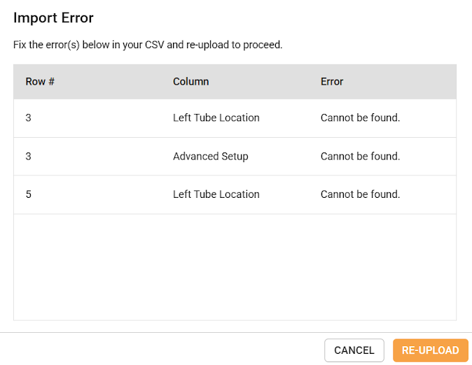 Review all data entries before importing. If errors occur during upload, check the error messages and correct the CSV file before re-importing. See step 2 below.