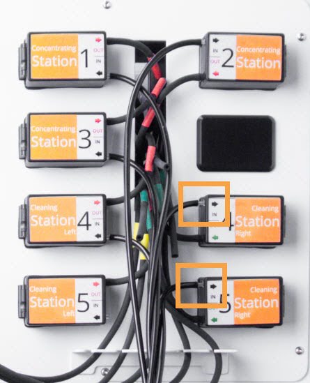 The reference below is an example of a 3-2 station configuration: 3 Concentration Stations + 2 Cleaning Station.