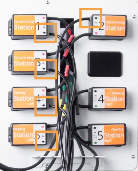 Insert one end of the tubes into the IN port of all Concentration Station pumps.