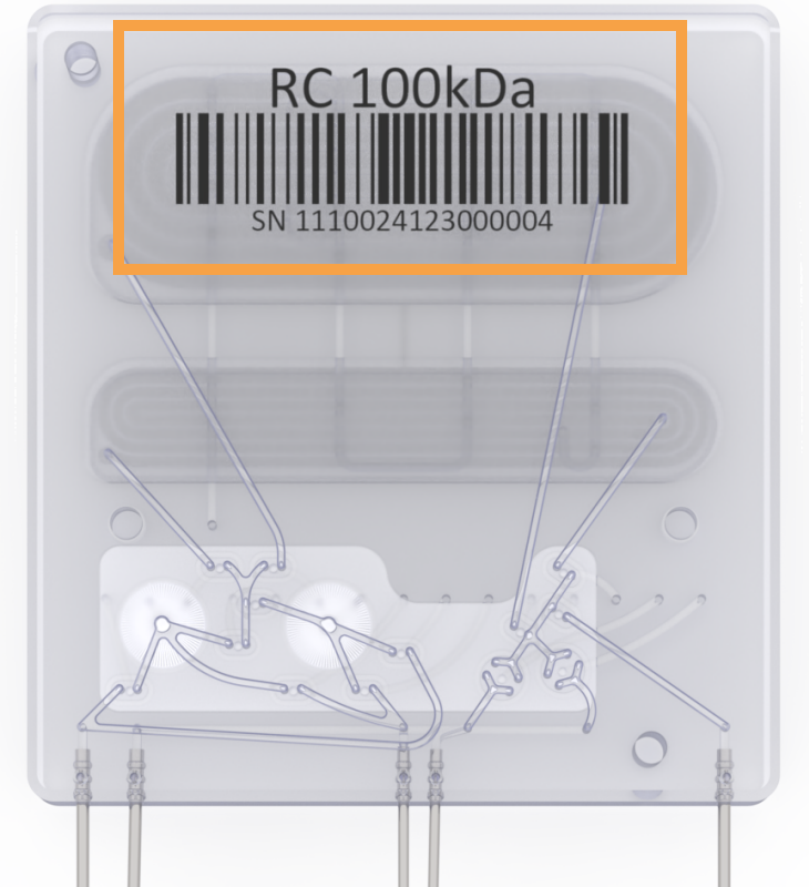 Select the appropriate Membrane Type (mPES or RC) and Molecular Weight Cutoff (MWCO) size for the chip required for your protocol. You can identify them on the top side of the chip or scan the barcode.