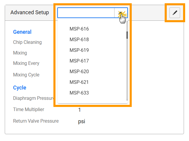 Open the Cycle tab, specify the chip’s pressure-control settings.