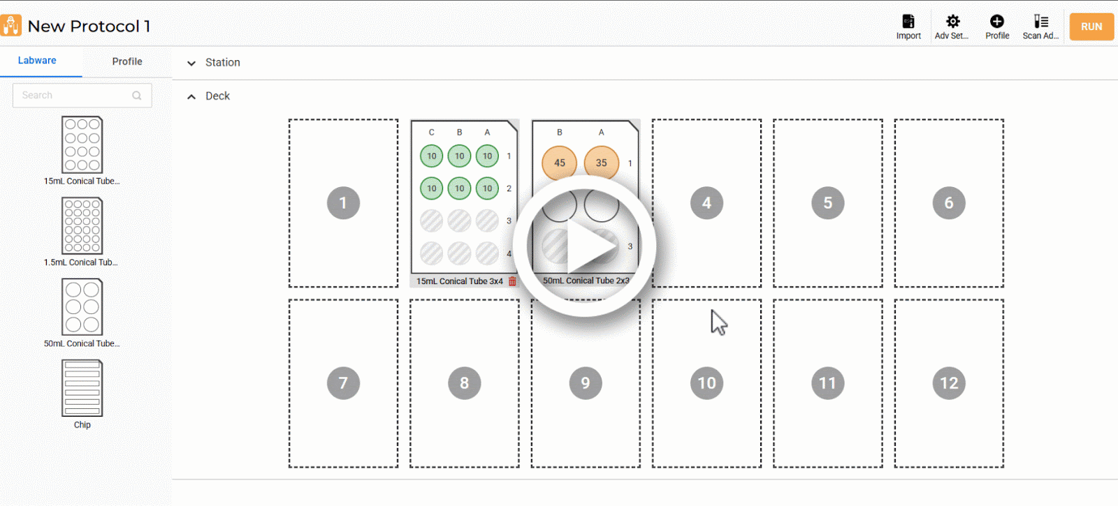 With the intuitive software UI, you can quickly arrange your labware to the desired deck position using the Drag-and-Drop function.