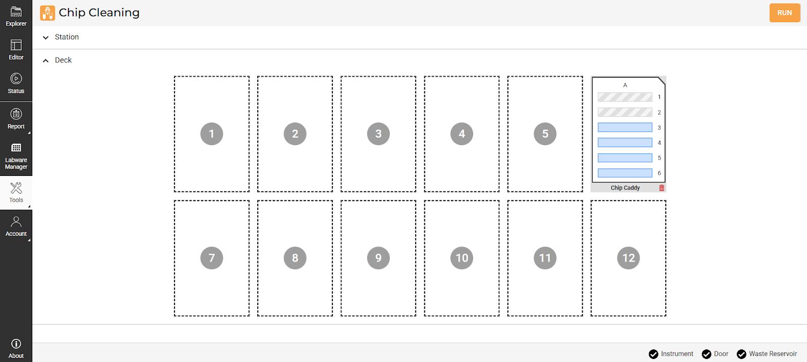 aµtoPULSE 1.3 introduces the Chip Cleaning wizard that allows you to clean batches of chips without the need for a fully defined protocol. This feature is accessible from the Tools menu and Editor page. For more information, see Chip Cleaning.