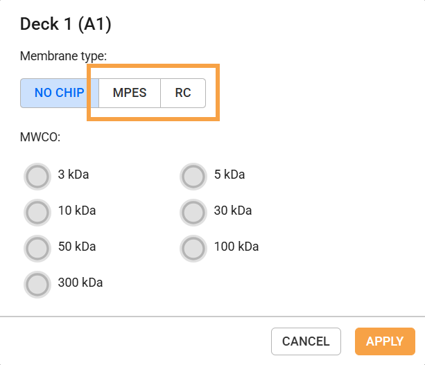 The MPES and RC chip membrane options are now available, expanding flexibility for various sample types and filtration workflows. These options can be selected when defining chips and creating profiles.